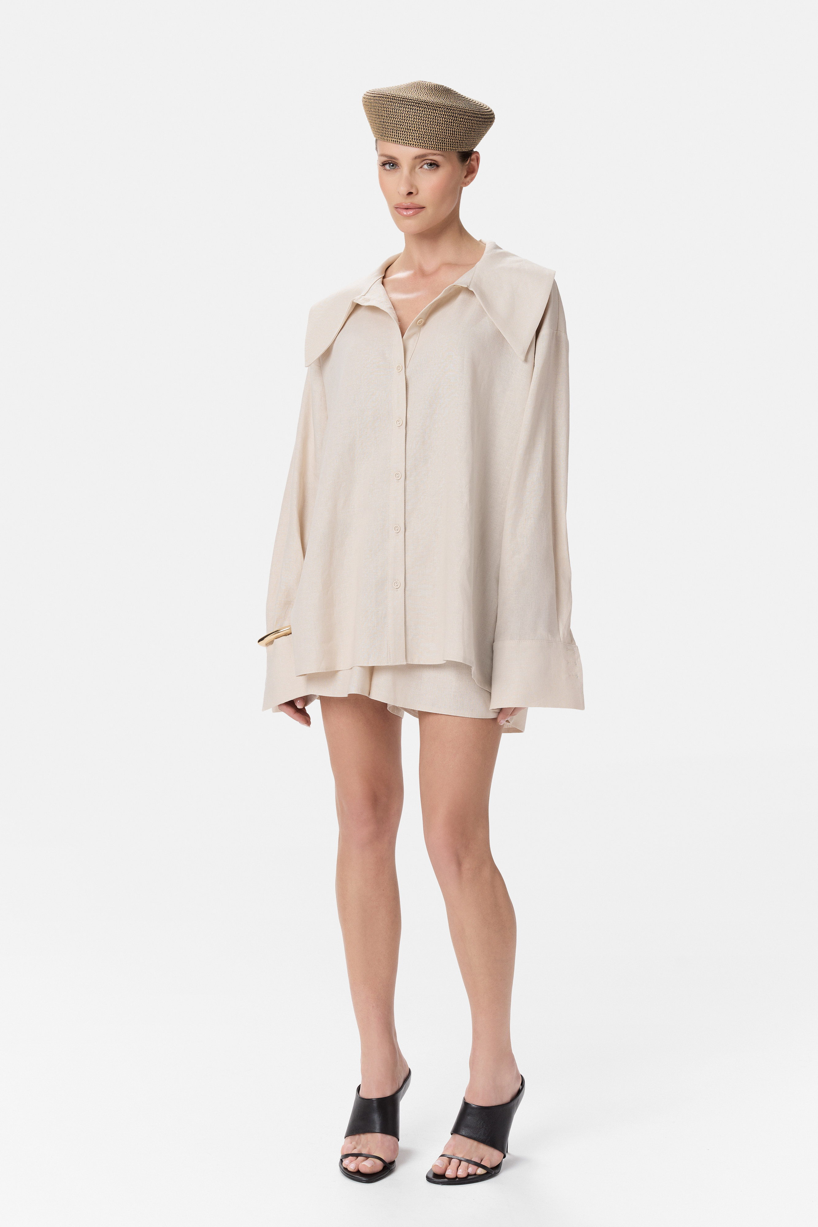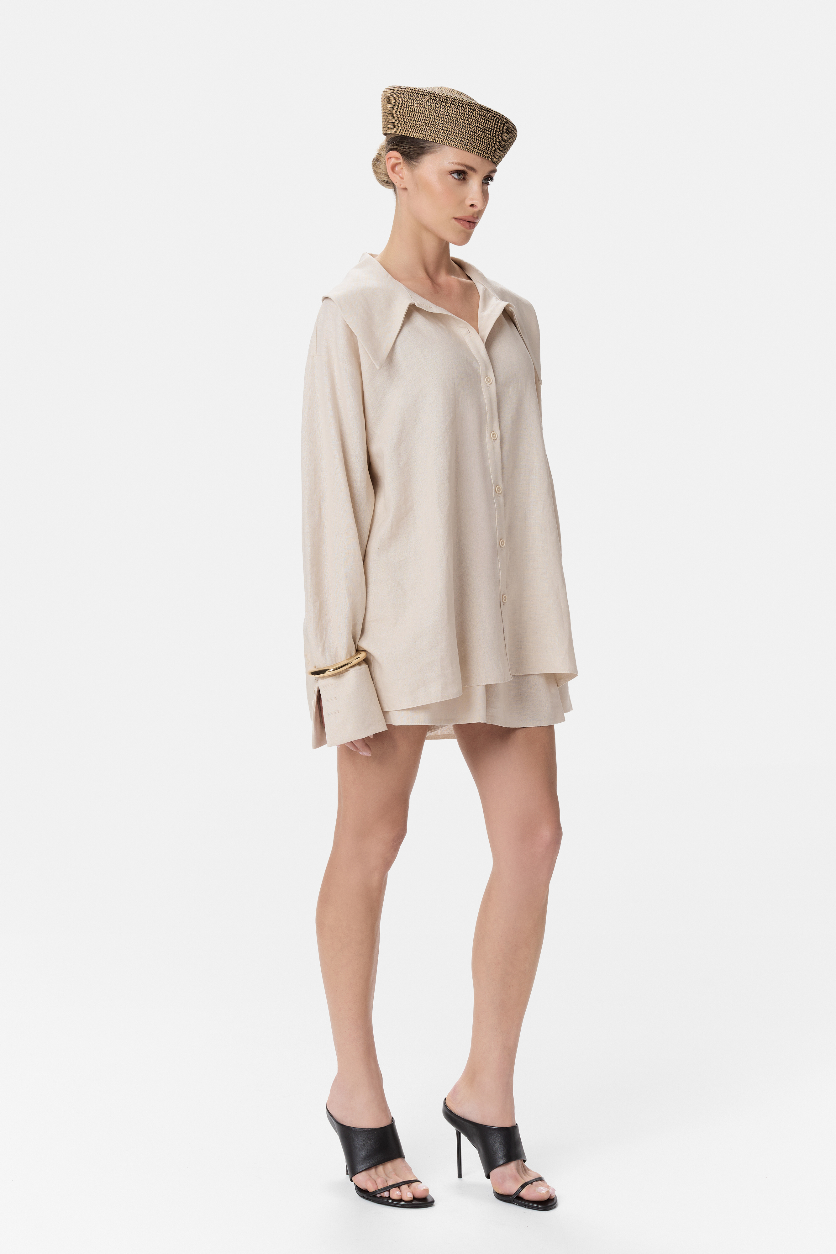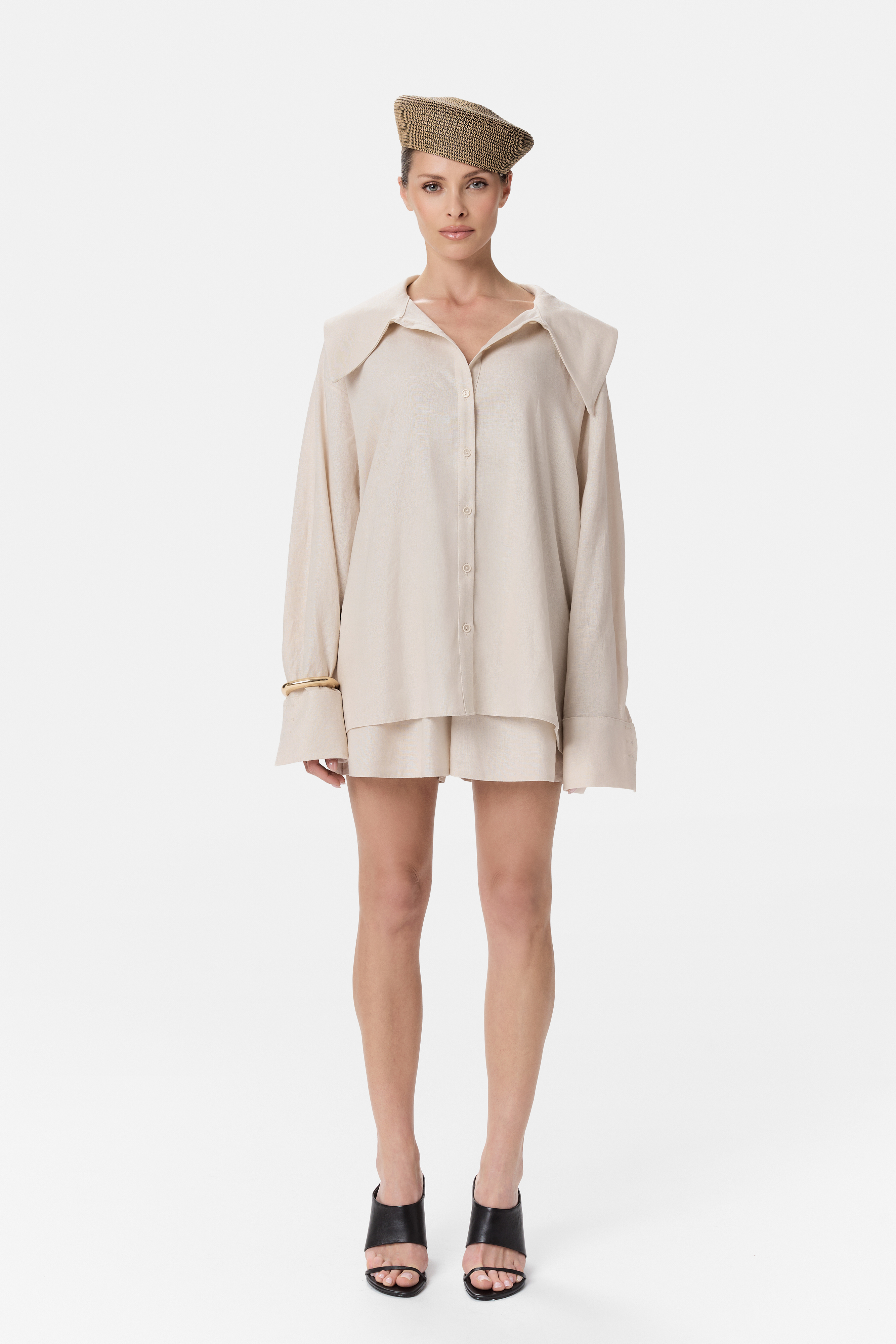 Lekka, swobodna koszula CORRINE, o oversize’owym kroju, która łączy w sobie minimalistyczną formę z subtelną elegancją. Delikatnie opadająca linia ramion, wydłużone mankiety oraz miękko układający się materiał nadają jej niewymuszonego, nowoczesnego charakteru.