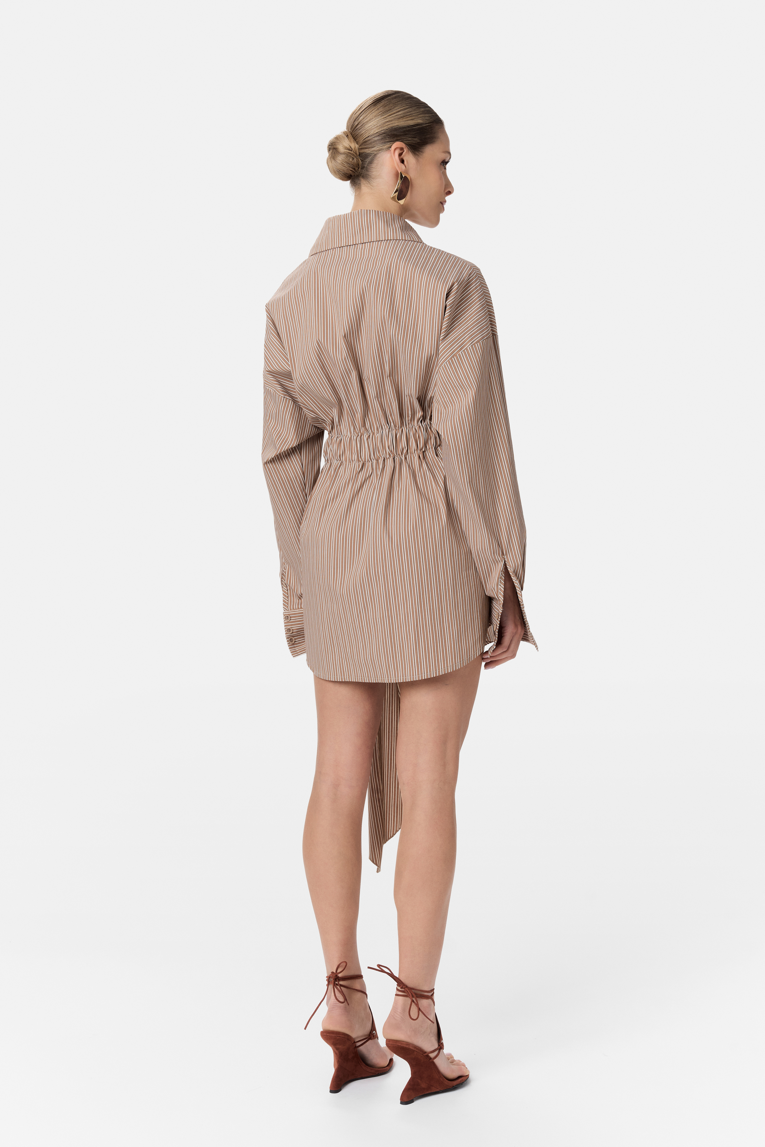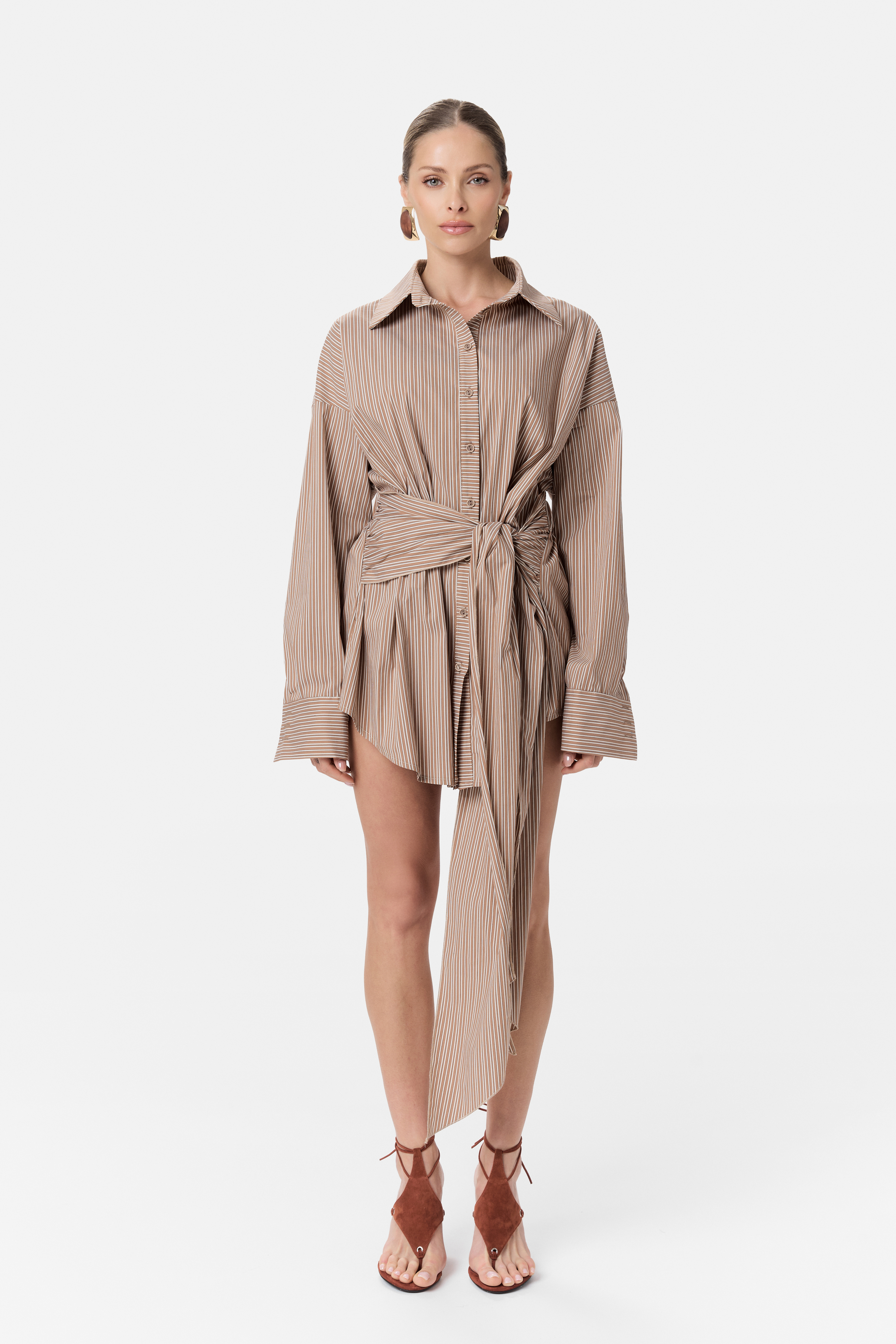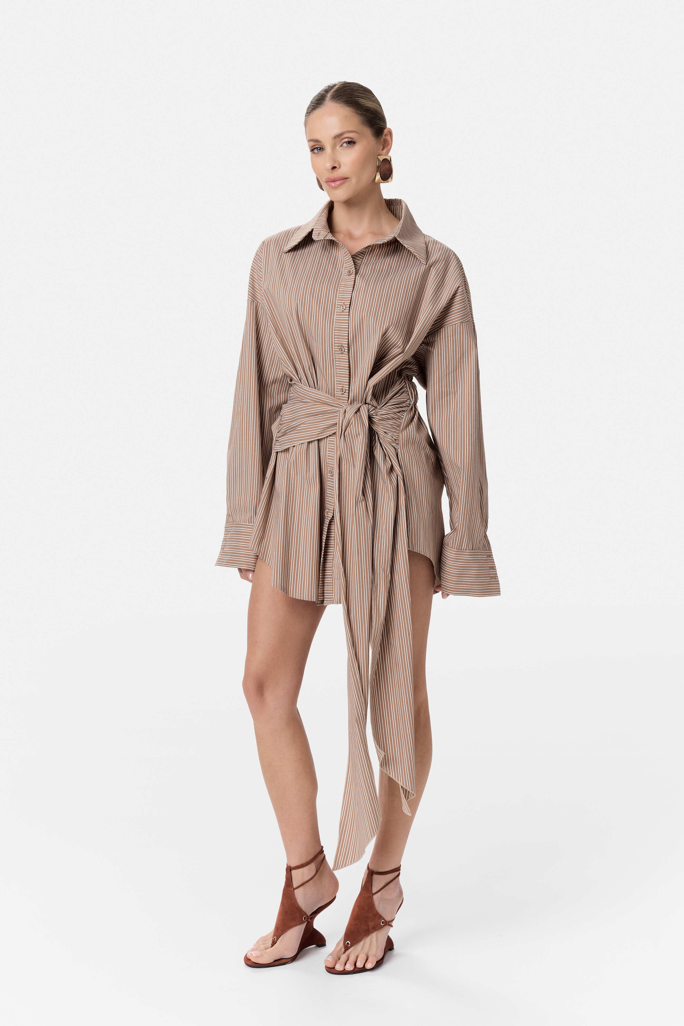Koszula może być noszona klasycznie - jako element stylizacji z spodniami lub szortami lub w bardziej odważnej odsłonie jako mini sukienka, eksponująca nogi i podkreślająca kobiecy charakter stylizacji.